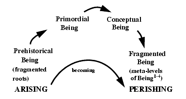 We have considered how Primordial Being recapitulates the inner structure of deep temporality in the Primal Scene of the Indo-Europeans. We then saw how the transformation from the mytho-poetic epoch to the metaphysical epoch has preserved that structure, allbeit in a transmorgified form. Finally, we have seen what occurs when Conceptual Being is raised up as the metaphysical principle par excellence. The mirror of Being cracks, and in those cracks, we see the primal pattern of our own inner being flower before our eyes. This leads us to consider the meaning of Being more carefully. This can only be done by going back and looking at the prehistory of Being now that we have sketched the beginning and end of its history. The interesting thing that this prehistory tells us, is that the fragmentation of Being is just a return of Being to its nascent state. Being was fragmented to begin with. Even Primordial Being, with its inner structure, was relatively unified in relation to the prehistory of Being. This brings home to us the stages of the becoming of Being itself, and emphasizes its nature as a fated thing in the world like everything else.
