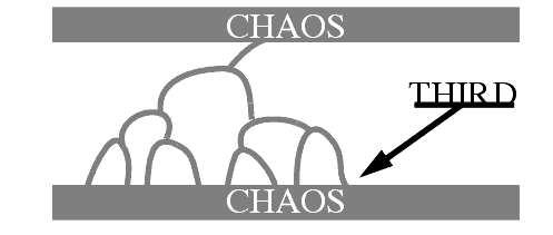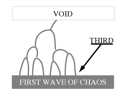 In the original pattern, the dynamical system arises from the void and begins to bifurcate production opposites. Then at some point in the bifurcation, the third thing sets off the first wave of chaos. Once chaos has arisen, there are successive waves of order and chaos. The lost pattern is set up to deal with these successive waves of war and peace through tenacious dynamic clinging. However, the whole cycle must have been set in motion by an arising out of the void of the original dynamic system. If no third thing were to arise to precipitate chaos, then the universe would be seen as opposites arising from the void and returning to the void.